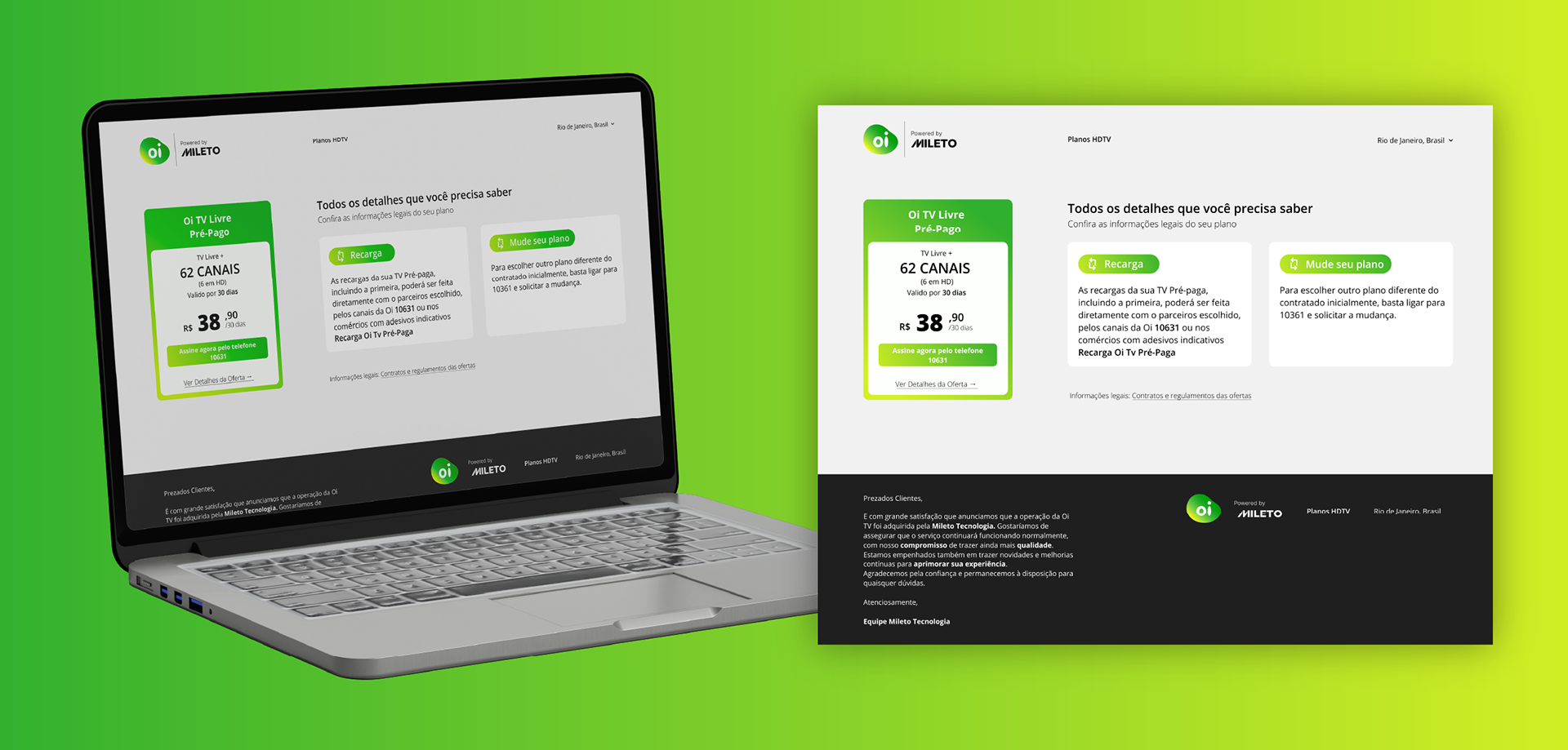 O resultado é um site leve, responsivo e funcional, que reforça os diferenciais da Oi TV e marca o início de um novo momento do serviço sob a gestão da Mileto.